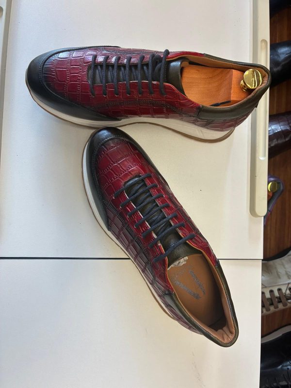Select optionsBurgundy Croc-Embossed Leather Smart Sneakers