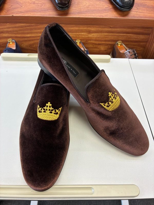 $195.00Men’s Brown Velvet Crown Embroidered Loafers